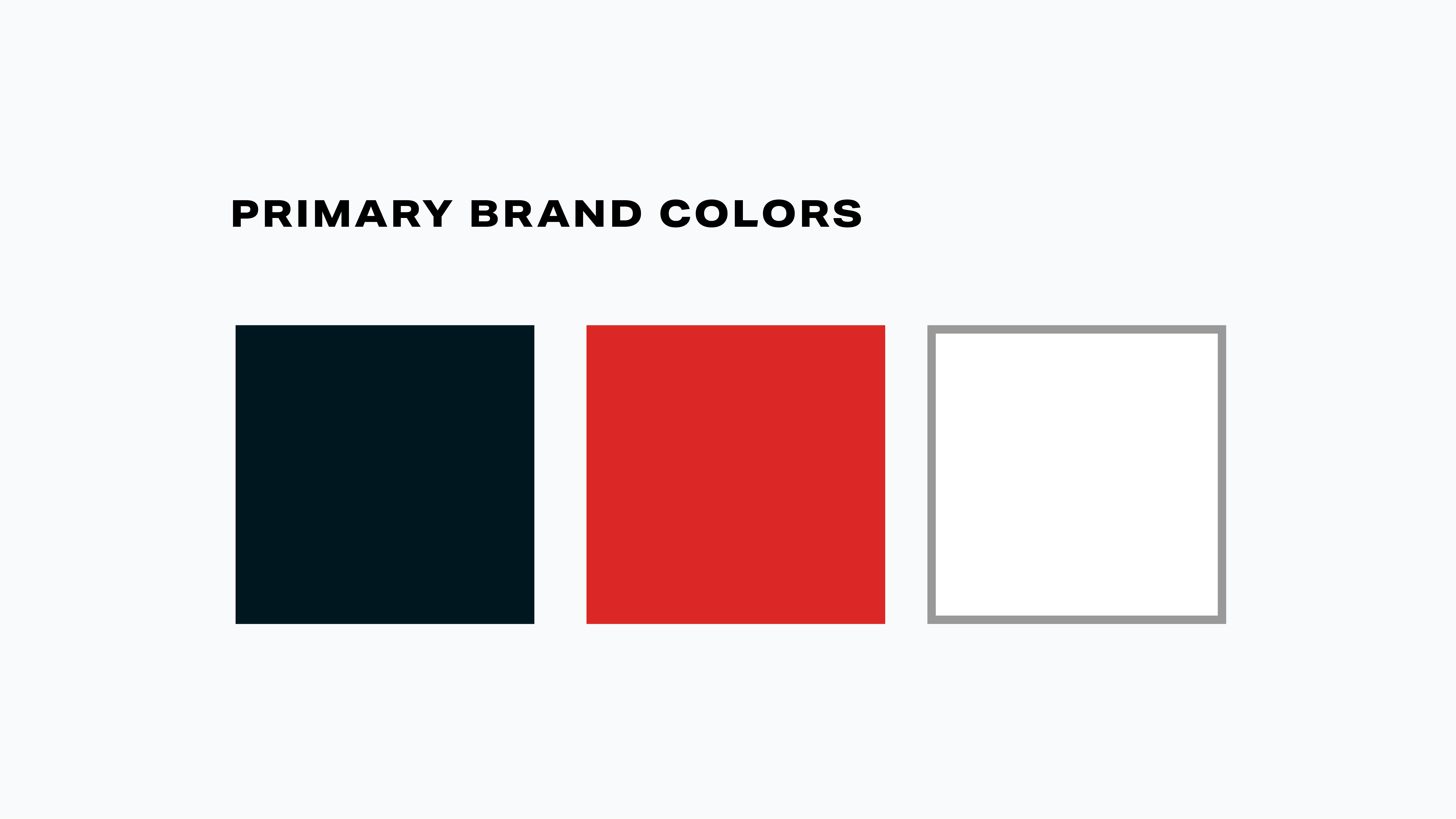 This palette drops the red as a primary color and introduces a lighter blue to pair with the dark blue. The red gets move to an accent color used for small details like roll over buttons. This retains the bold high-impact look of the previous palette without having the red dominate the space.